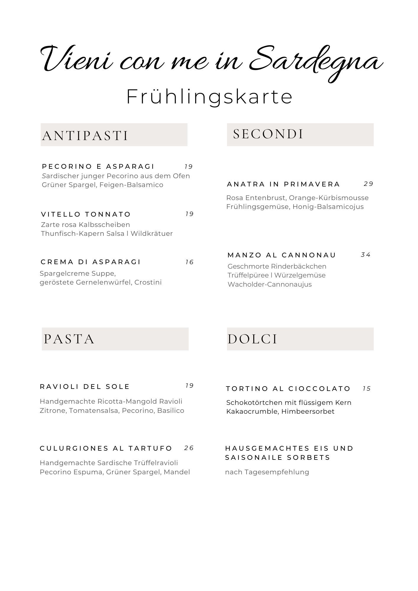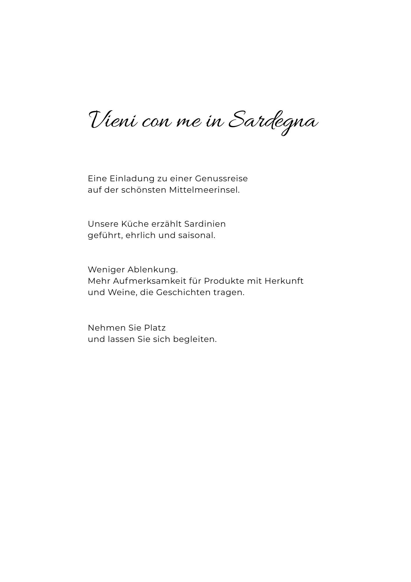 Nehmen Sie Platz an unserem reich gedeckten Tisch und lassen Sie sich in die sardische Welt des Genießens entführen.